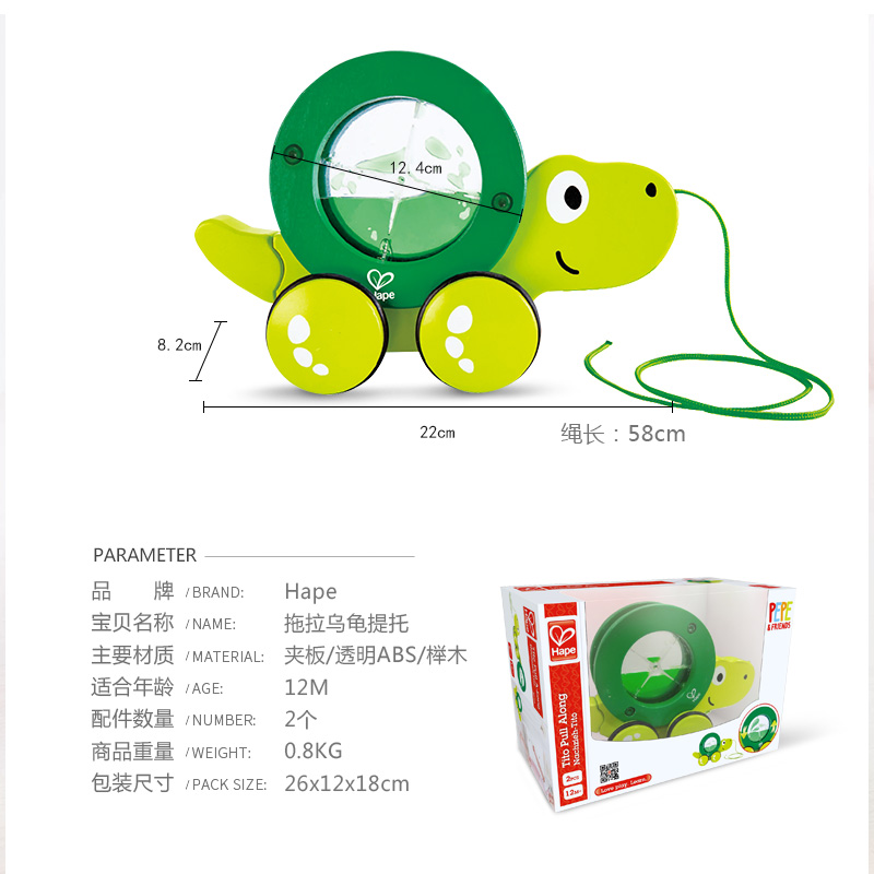 Hape drag toy wooden leash drag dog pull wire tortoise can shake baby toddler rope toy