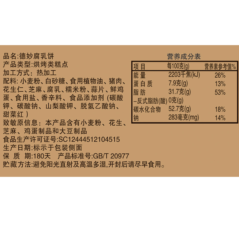 De Miao fermented bean curd cake 458g gold salty meat pie Chaoshan specialty traditional pastries, snacks, refreshments and snacks