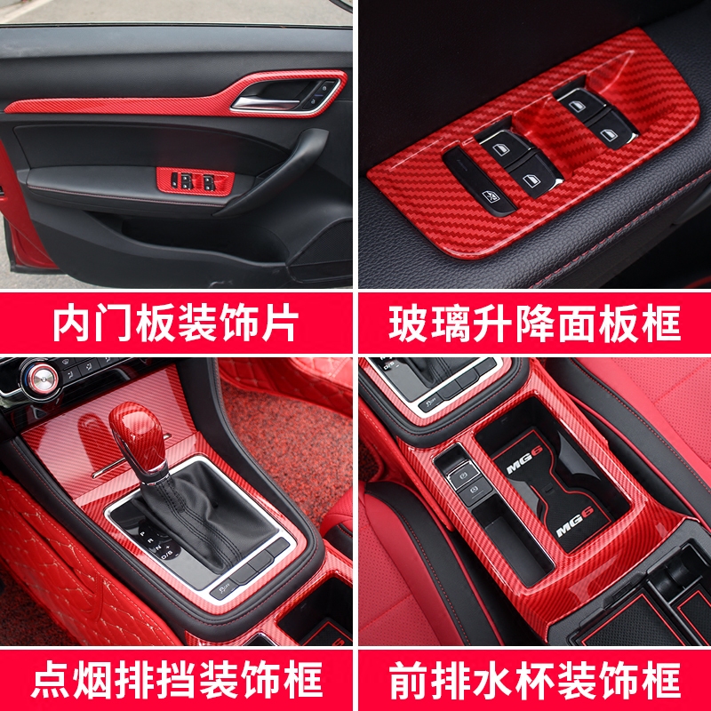 Apply 17-19 new barons MG6 Carbon fiber red interior retrofit glass lifting decoration frame platoon decoration sticker