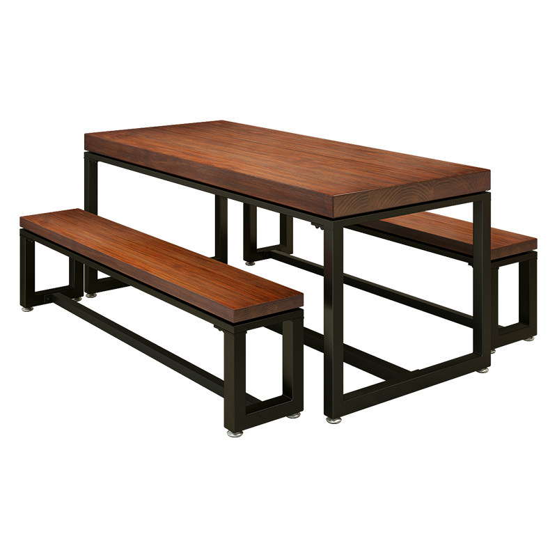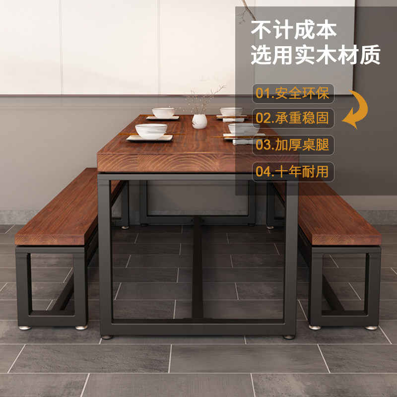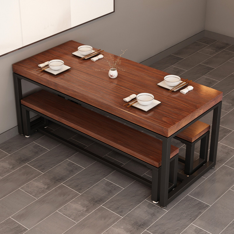 Min Juku Café Noodle Restaurant Restaurant Dining director table long stool New Chinese iron art solid wood dining table and chairs combined 1034