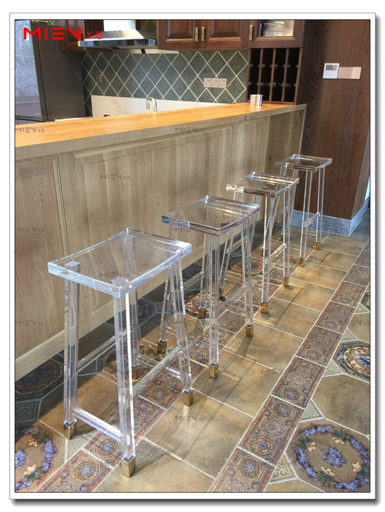 Nordic light extravagant transparent bar stool Piano Stool high through acrylic makeup stool Shoes Stool organic glass High foot Bar stool