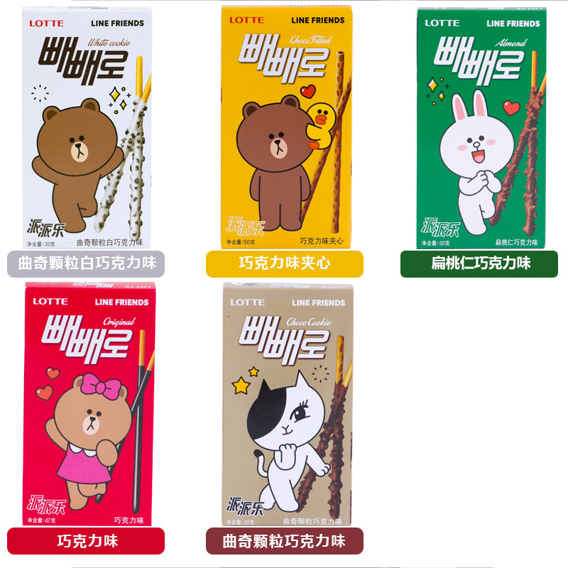 Korean imported Lotte Flat Walnut sandwich biscuit sticks 50g * 5 boxpie Pie Sandwich Chocolate Bars 11 11