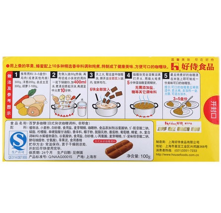 Haoshi House Baimenguo Curry block Japanese block Yellow Curry seasoning Original flavor No 1 100g*3 boxes