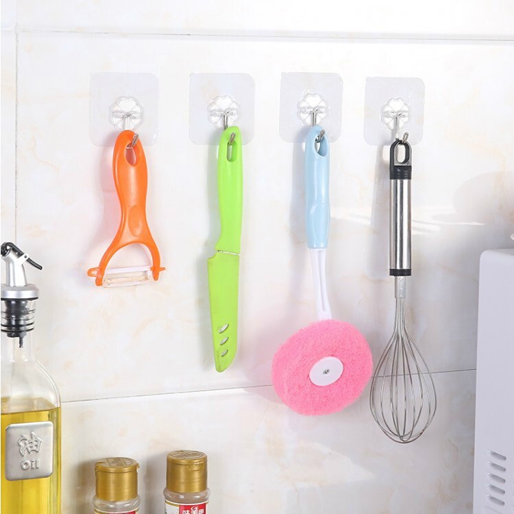 Stainless steel hook nail-free strong sticky hook creative seamless tile wall kitchen door transparent suction cup magic sticker