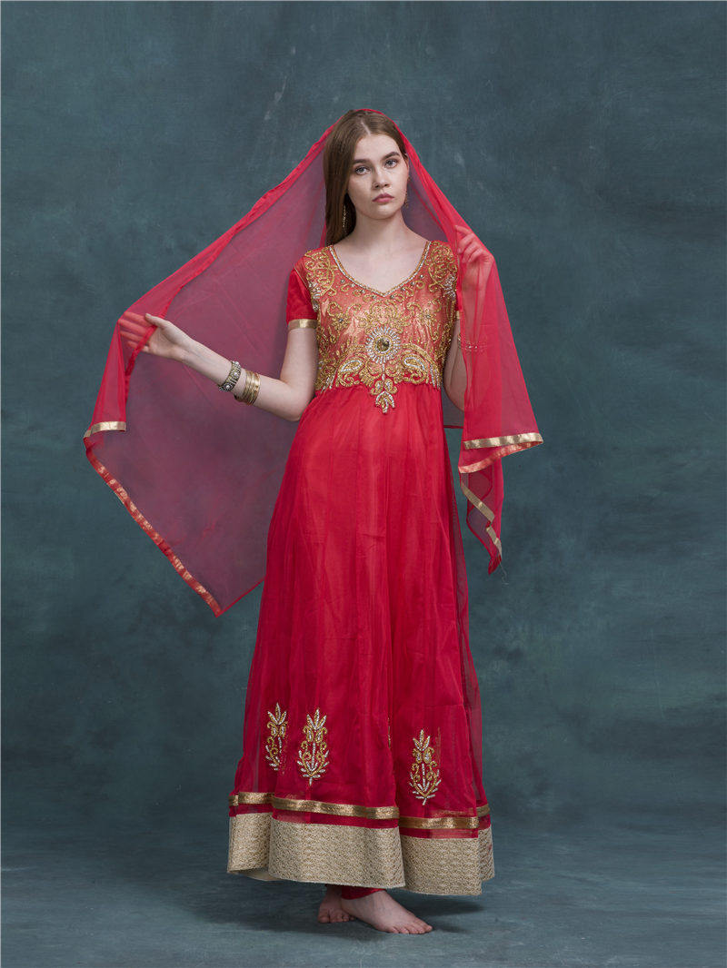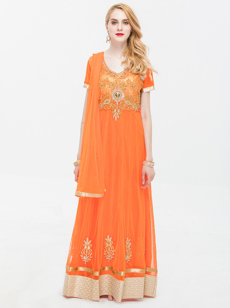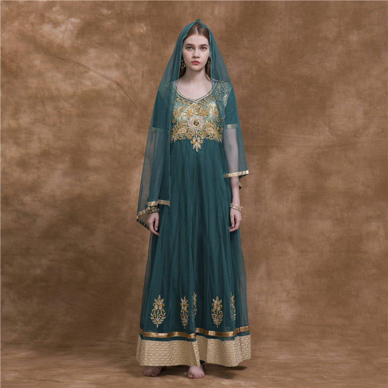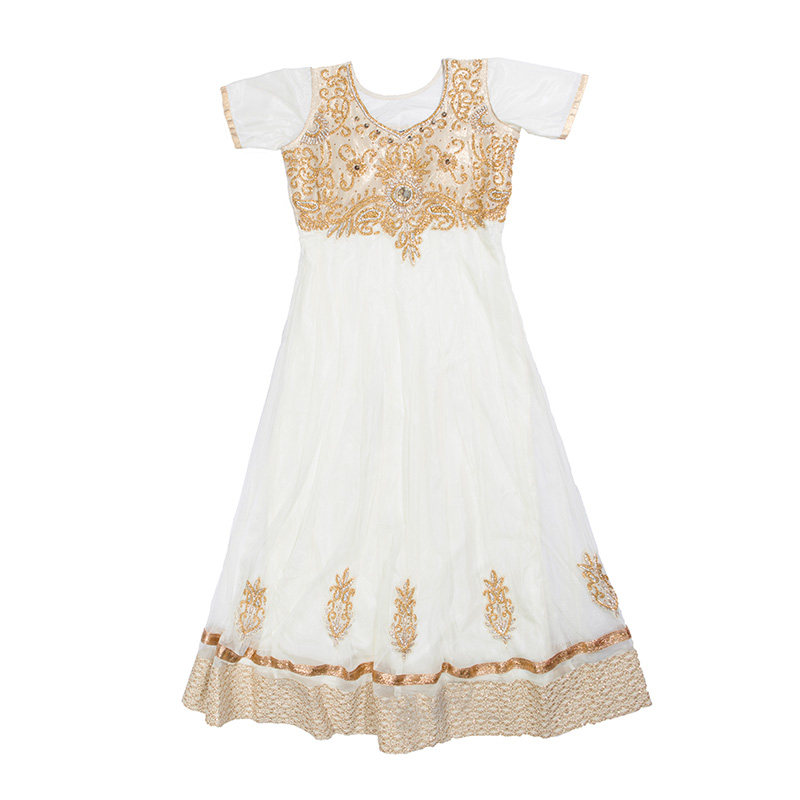 Indian dance practice suit performance suit beige embroidered beads next to Jabi anna ethnic wind mesh short-sleeved long version set