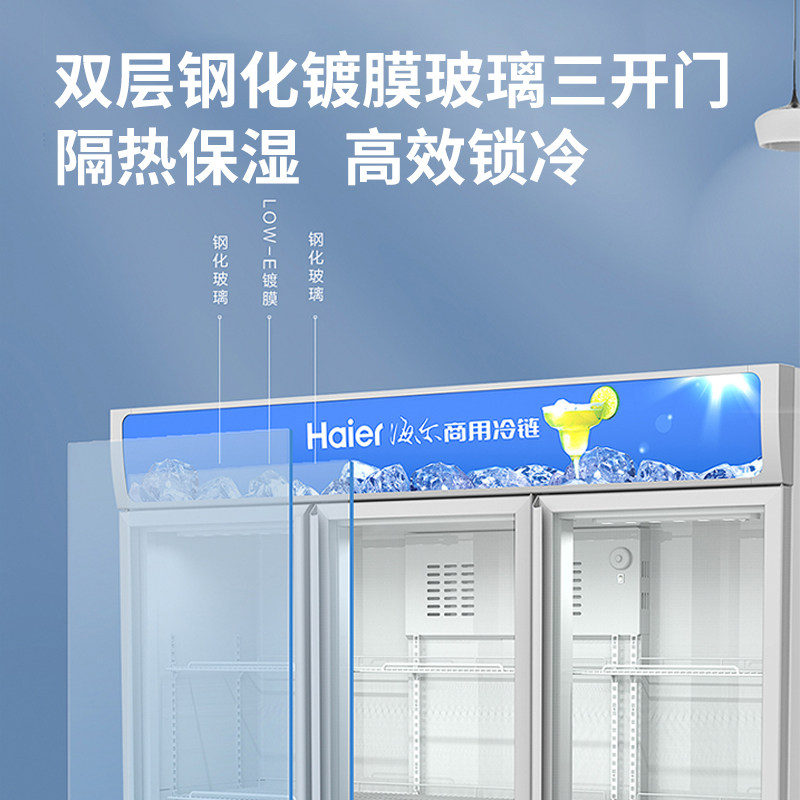 Haier Beverage Cabinet Supermarket Display Cabinet Large Capacity 1050 Liter Three Doors Vertical Commercial Freezer Refrigerated Freshness