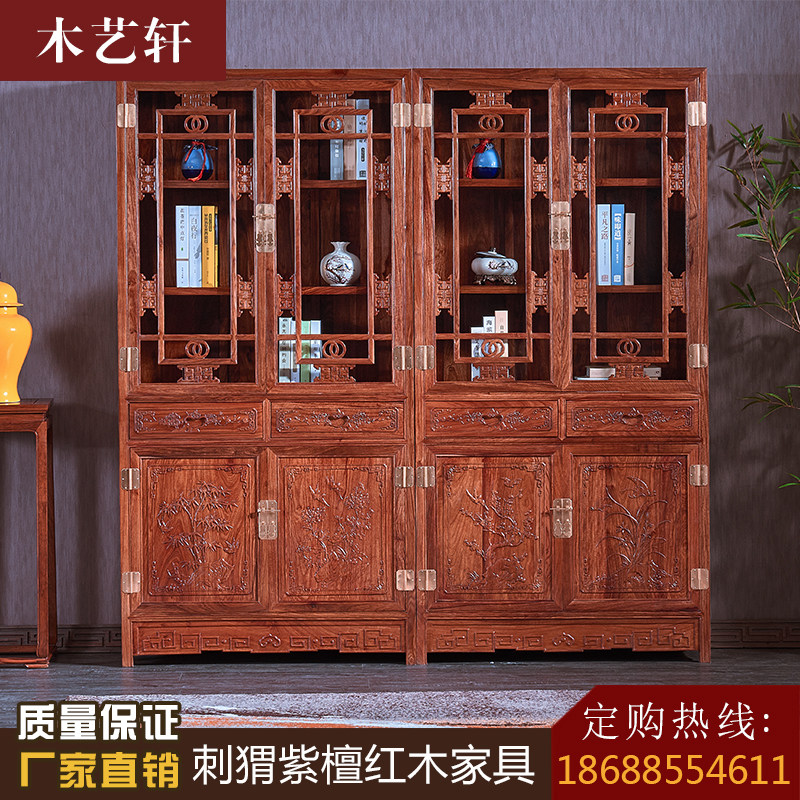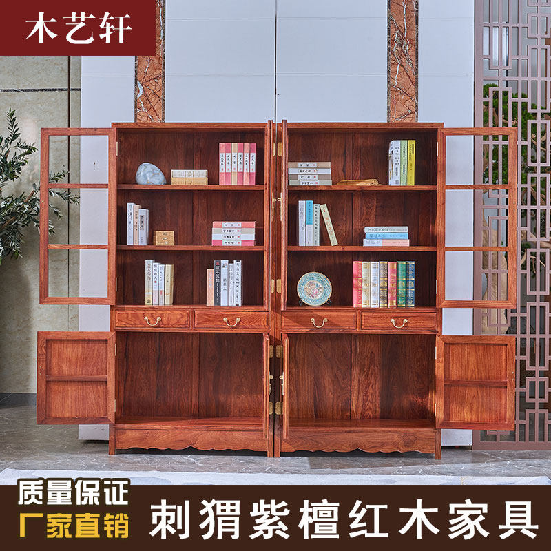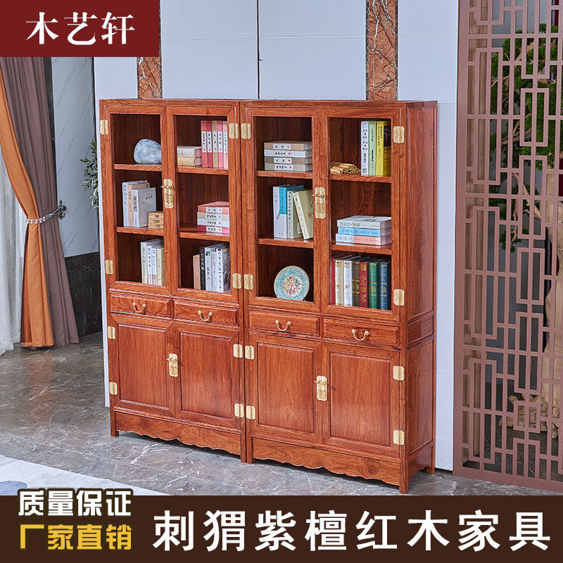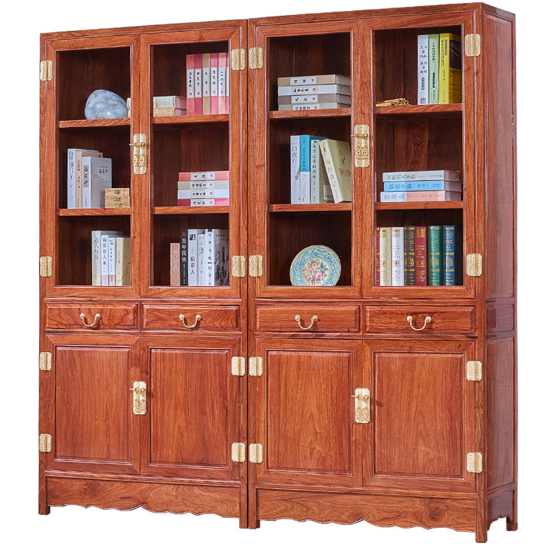 Redwood Bookcase Hedgehoard Bookshelf Flower Wooden Bookshelf Office Solid Wood Storage Glass Display Cabinet