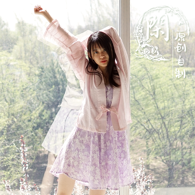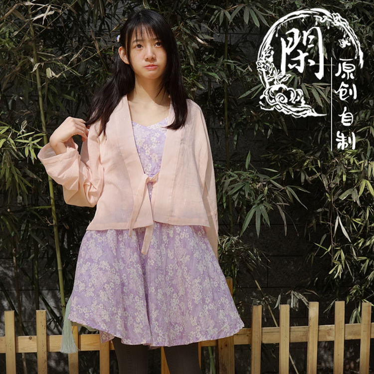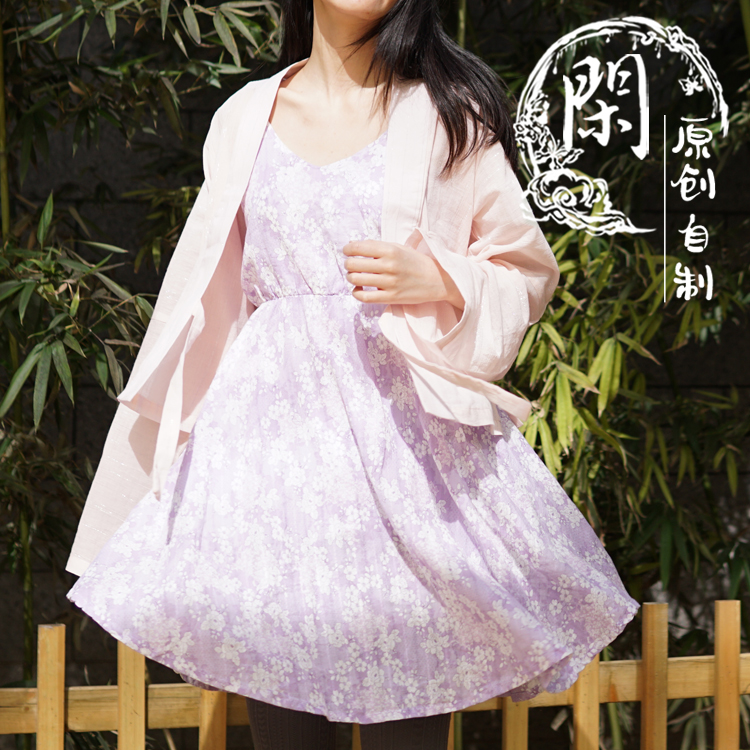 Leisure original spot Han element cotton suspenders dress pink purple floral short cardigan women's spring and summer models