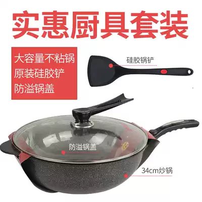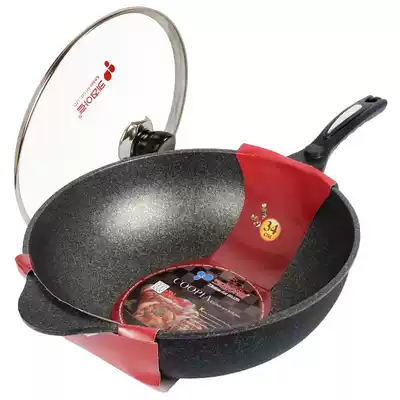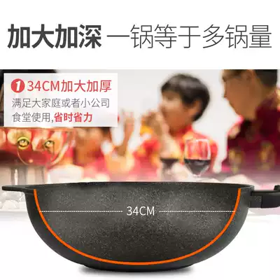 Korean wheat rice stone wok 34cm non-stick pot deepens household smoke-free wok induction cooker gas Universal