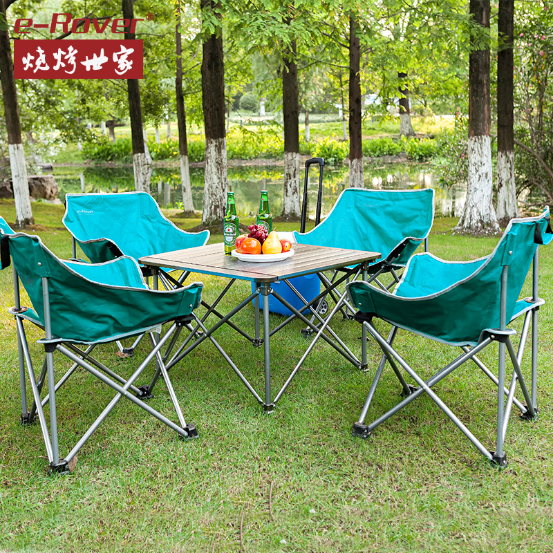 Barbecue family outdoor folding table and chairs portable table field car picnic 1 table 4 chair set camping equipment