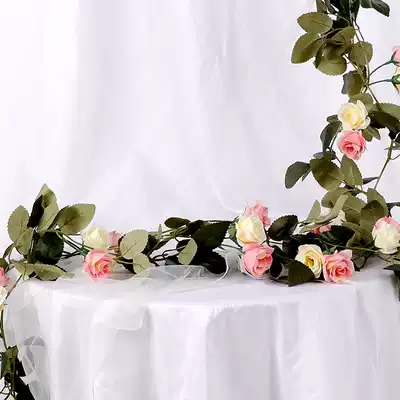 Simulation rose rattan wall-mounted decorative flower Vine fake flower vine winding indoor balcony decorative flower plastic flower Rattan
