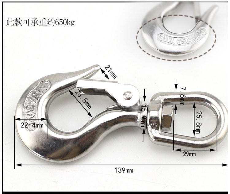 304 stainless steel American cargo hook ring rotary cargo hook lifting hook universal grab hook anti-off cargo hook