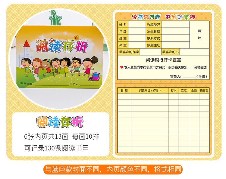 Blue reading 13 pages Orange reading 13 pages of growing depository English reading 13 pages pink reading 13 pages Poetry Pass 12 Page Wish Deposit Card Green 12 Page Honour deposit card 24 Page