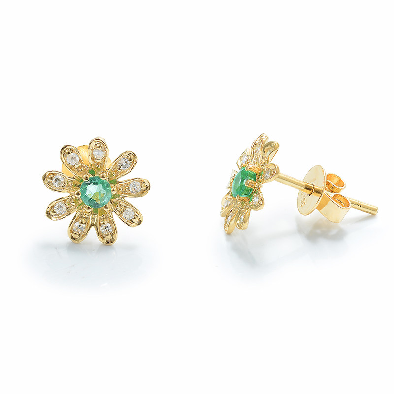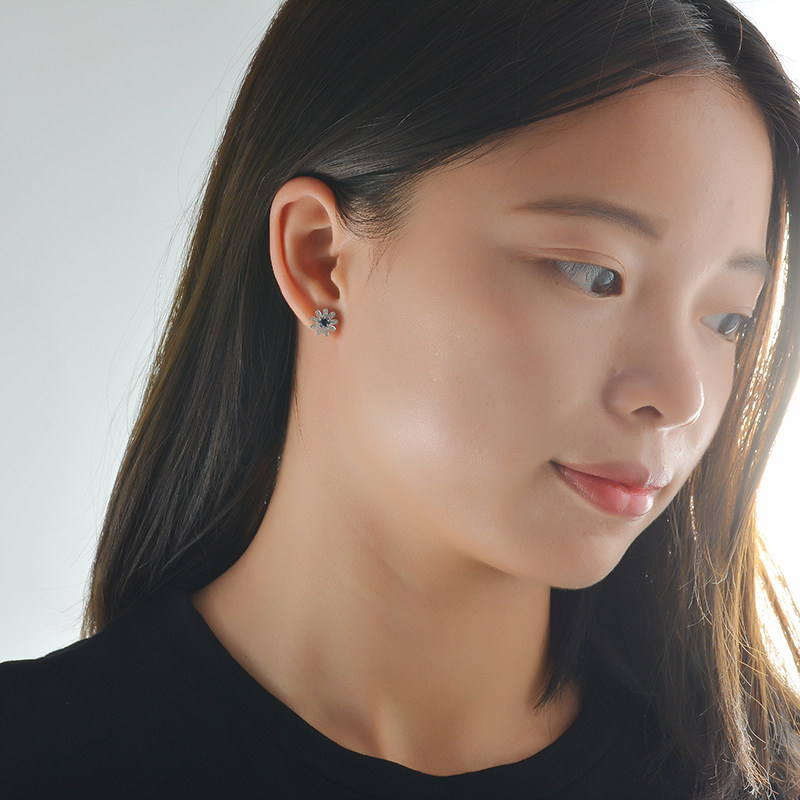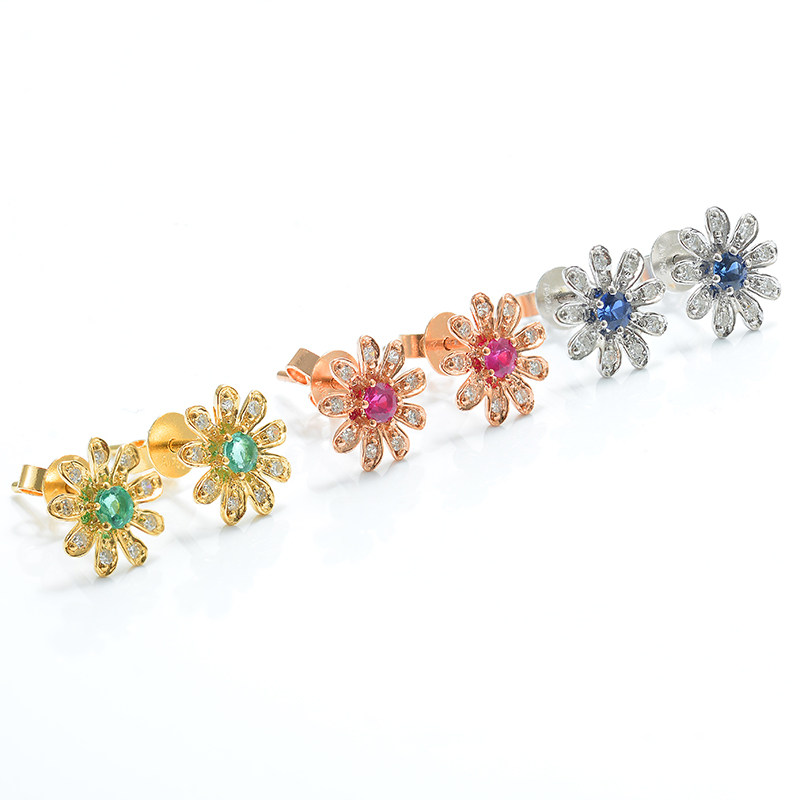 Handsome jewels ruby 18K platinum diamond earrings Zum green Sapphire Daisy Earrings the Korean version of the earrings