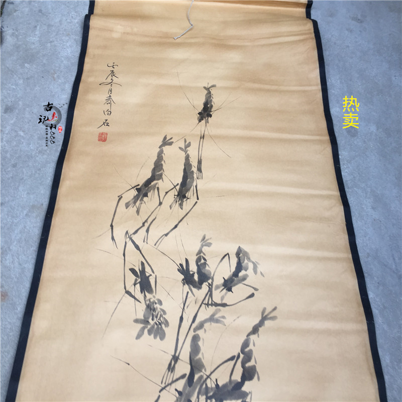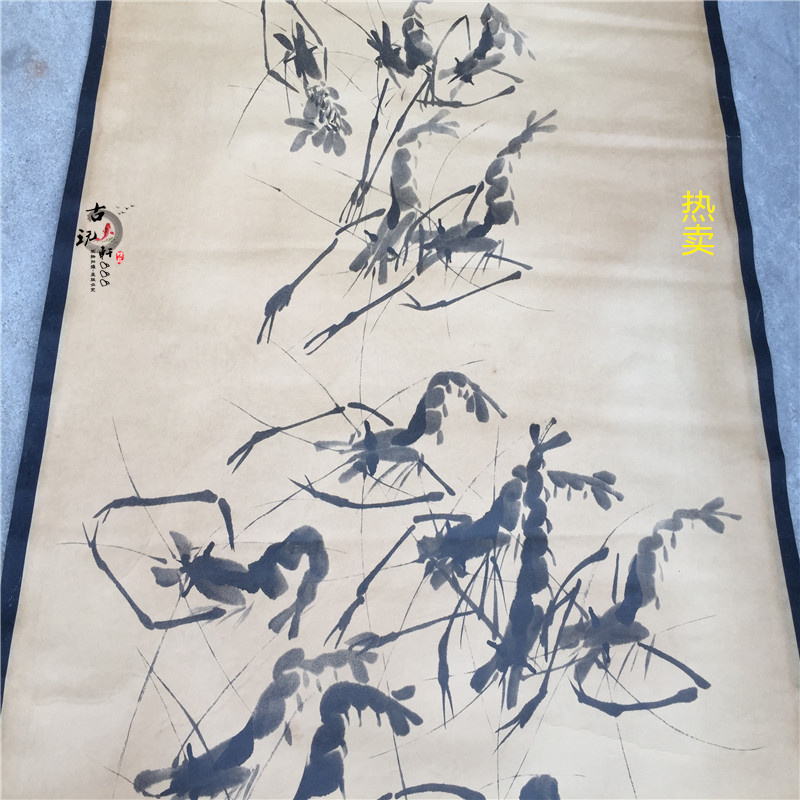 Antique Making Old Character Painting Country Painting Celebrity Landscape Painting Living Room Office Decoration Middle Hall Painting Scroll Painting Collection Shrimp