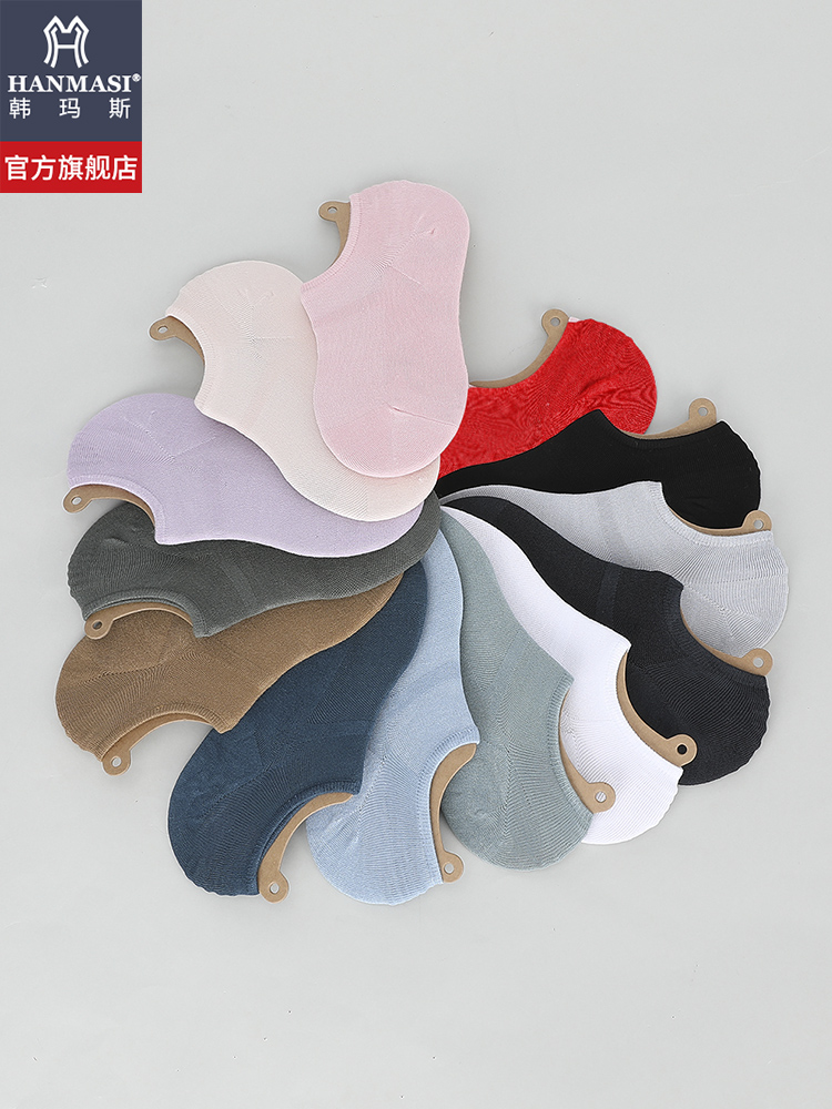 Hanmas socks invisible socks women's pure cotton socks shallow mouth men's silicone non-slip spring and summer thin section deodorant excellent curtain fine yarn