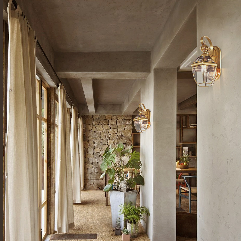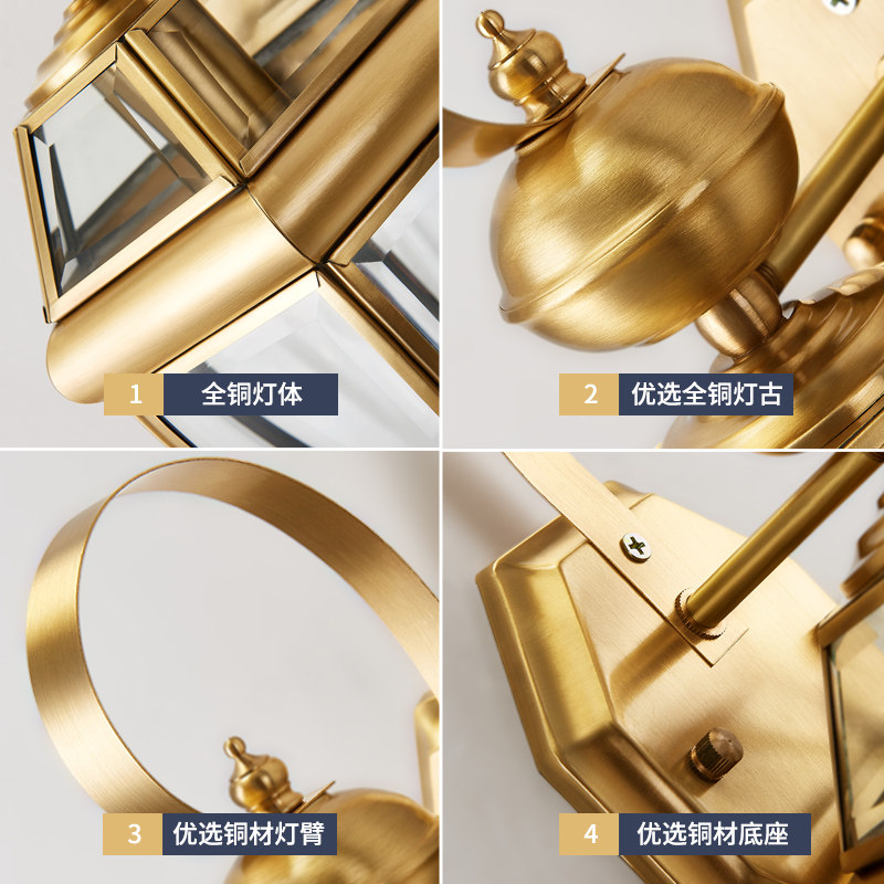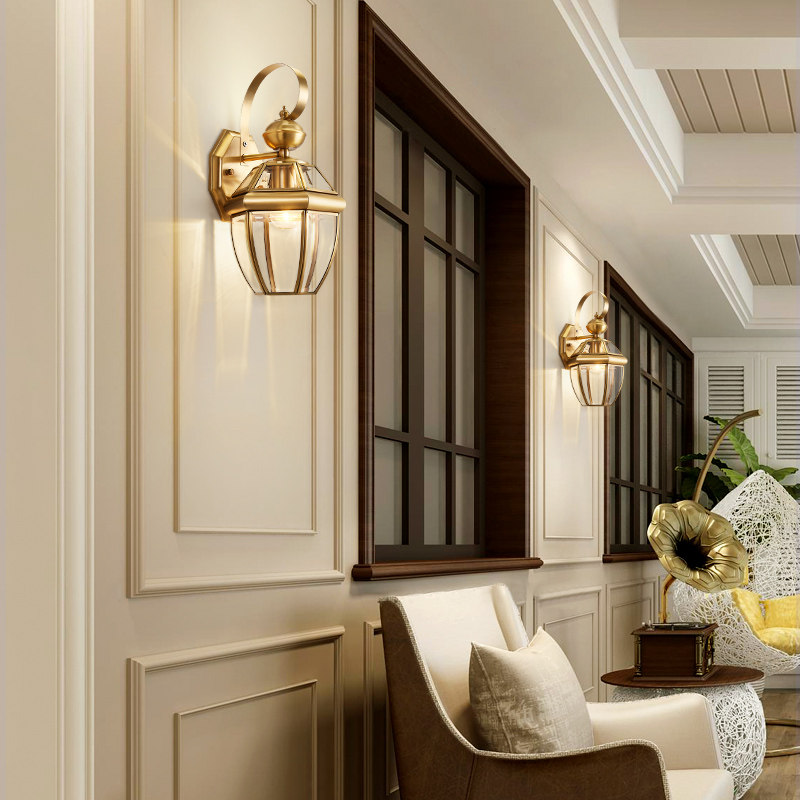 Shiyuan American wall lamp retro all-copper lamp porch walkway lamp courtyard lamp household atmospheric wall lamp 20084R