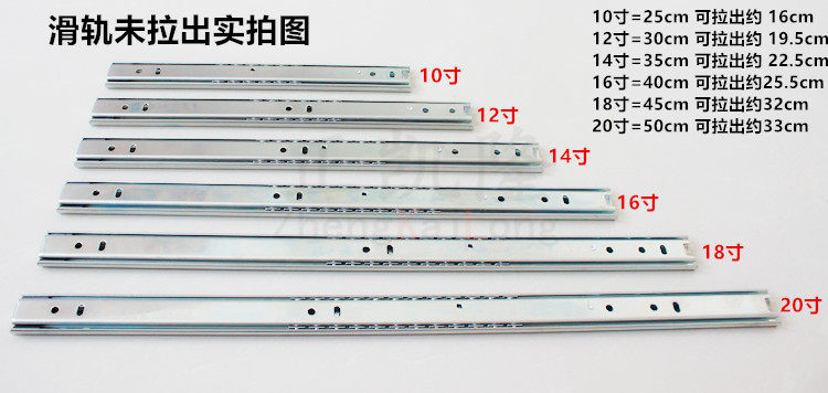 10 inch = 25 cm, one pair of slide rails, 10 inches = 25 cm, one pair of slide rails (including screws), 12 inches = 30 cm, one pair of slide rails, 12 inches = 30 cm, one pair of slide rails (including screws)
