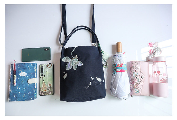 Bucket bag artistic temperament simple cloth bag ancient style bag Hanfu bag travel bag detachable Messenger shoulder bag