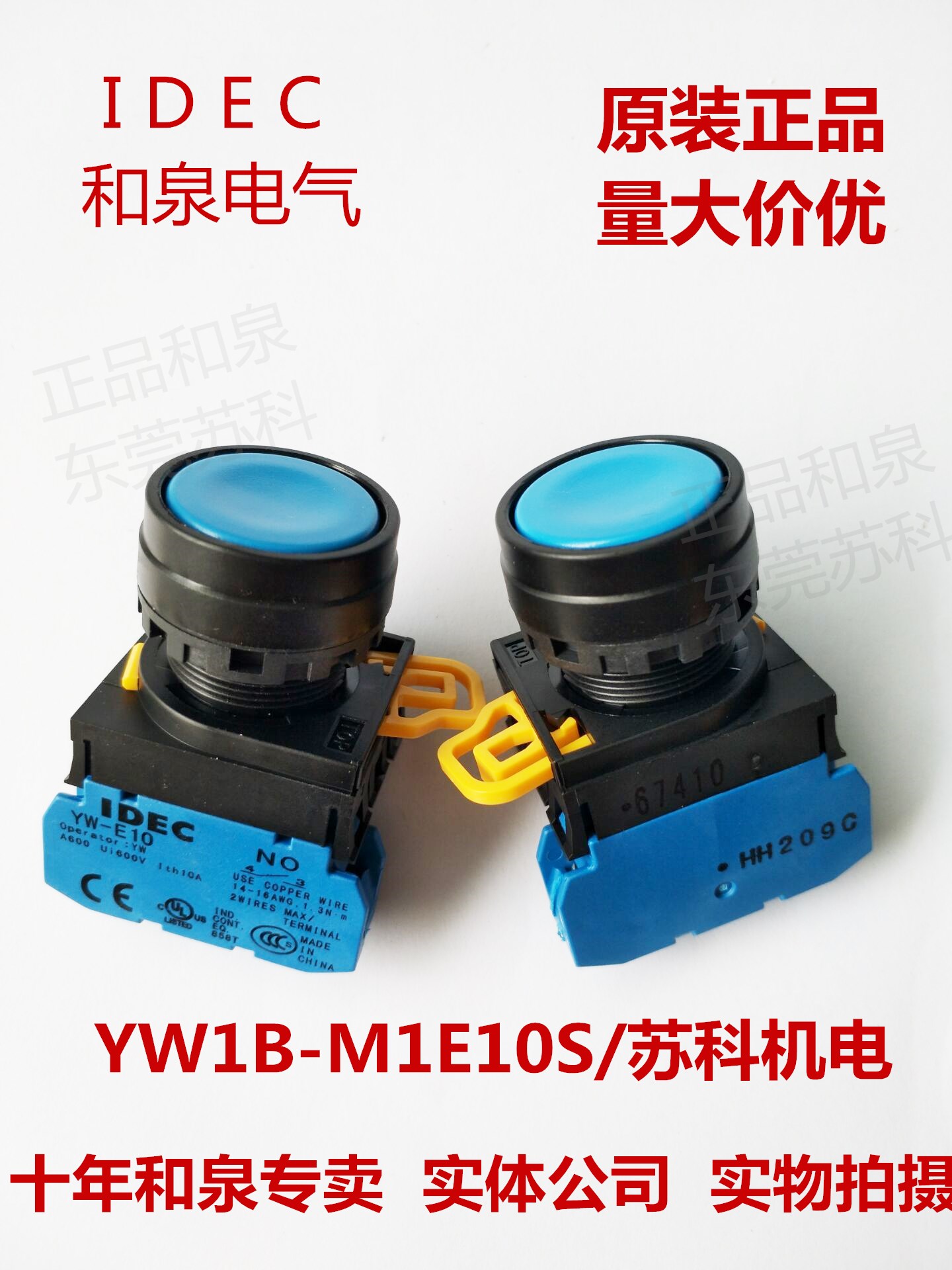 Original dress IDEC and spring flat head blue button switch YW1B-M1E10S 1A YW-E10