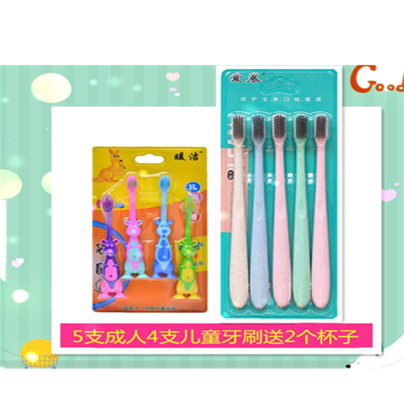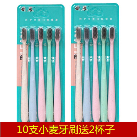 Wheat Straw Bamboo Charcoal Ultrafine Soft Hair Gum Cleaning Toothbrush 5 Clothes 4 Children's Toothbrush Send 2 Cups