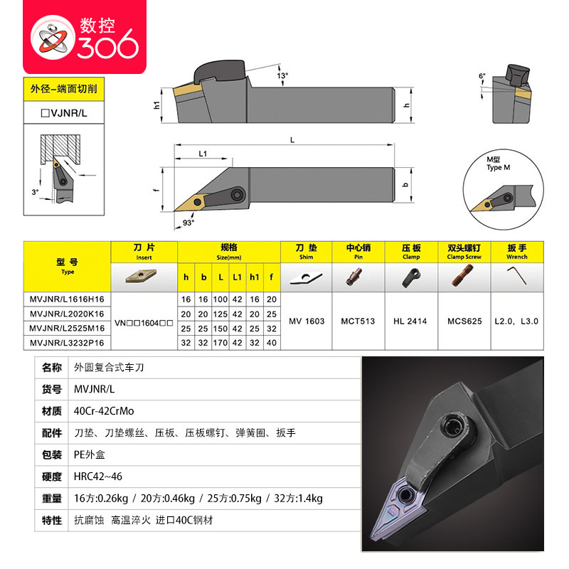 Numerical control Outer round knife lever 93 degrees Outer round car MVJNR2020K16 MVJNR2020K16 2525M16 1616H16 lathe cutter