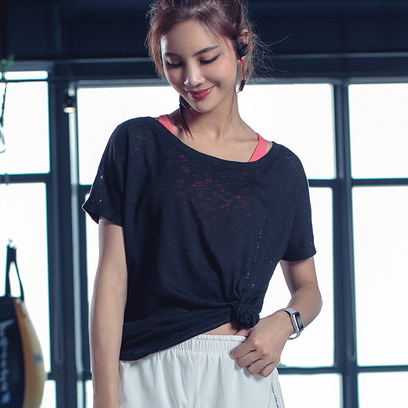 Sports top Women's loose fitness clothes Large size quick-drying T-shirt Yoga suit Short sleeve Xia Xian thin net red running blouse N