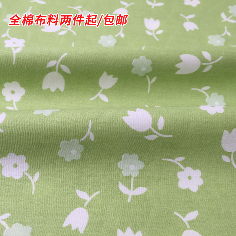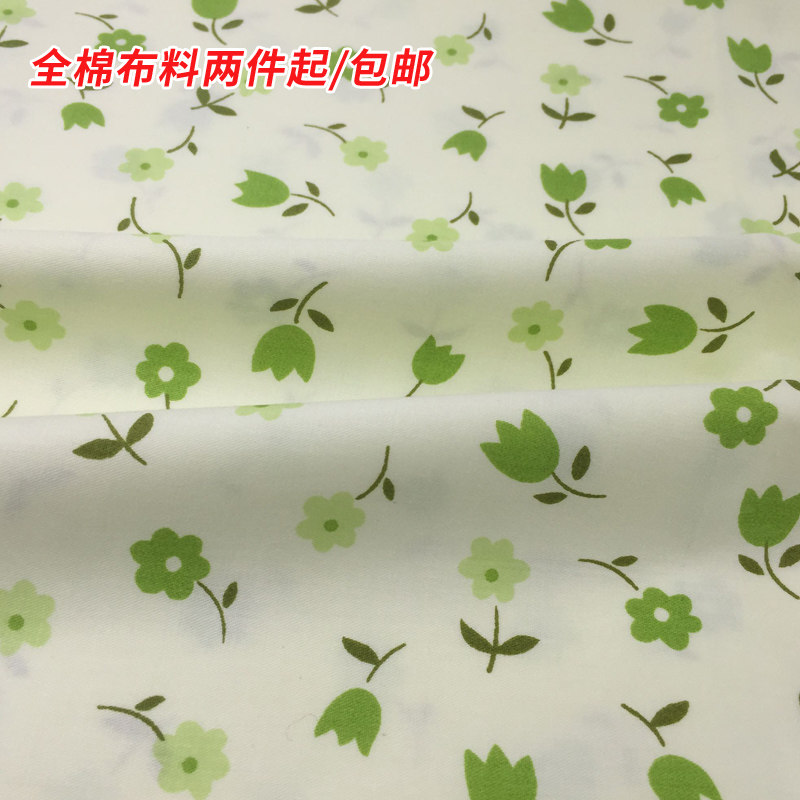 Green fresh cotton pure cotton pastoral small floral cloth cloth curtain fabric handmade diy sofa bedding