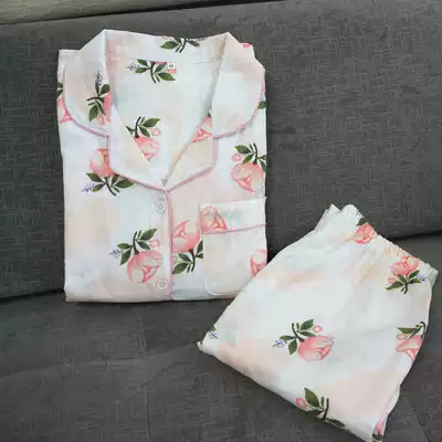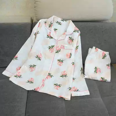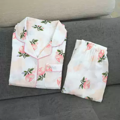2018 New Women's pajamas spring and autumn cotton double gauze Korean long sleeve trousers thin home suit