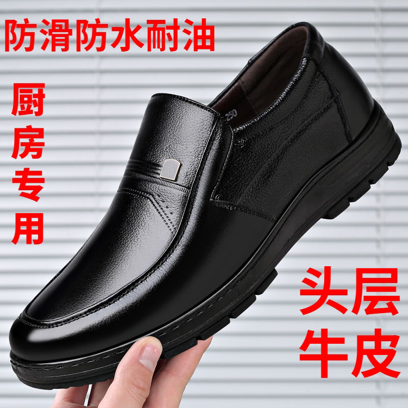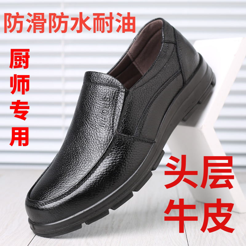 Summer chef shoes non-slip waterproof oil-proof wear-resistant breathable work shoes leather casual kitchen labor insurance shoes men