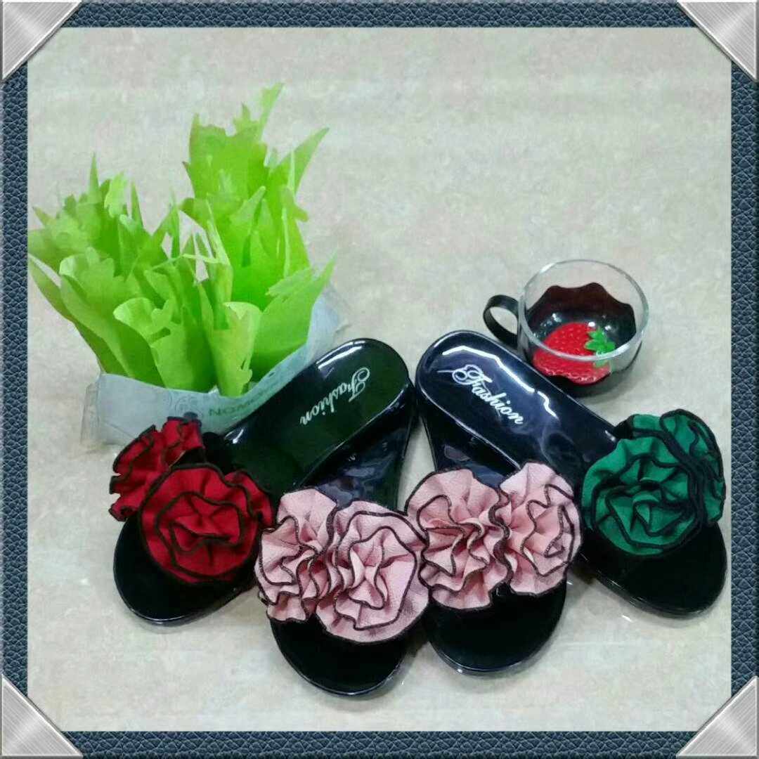 New Red Flower Head Pink Green Bouquet Black Bottom Resistant Dirty Girl Sandals Indoor Slippers outside Jelly Glue Shoes