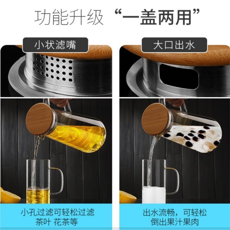Glass cold water kettle accessories 304 edible stainless steel filter cover zero with bamboo and wood cover Kung Fu tea accessories