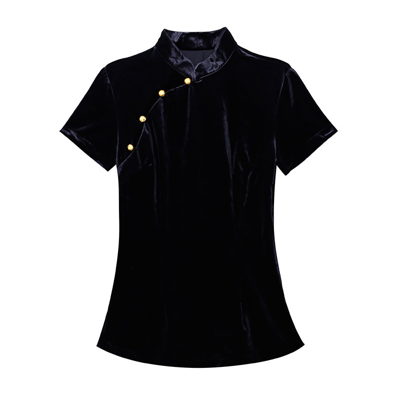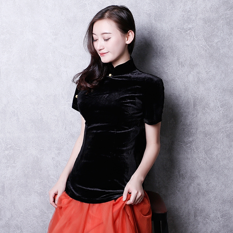Spring and autumn 2020 new women's vintage cheongsam top improved Chinese velvet slim short leggings