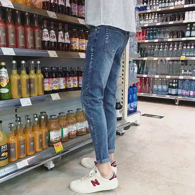 Ankle-length pants denim pants 2021 spring men Korean fashion slim straight casual Joker small feet 9-point pants