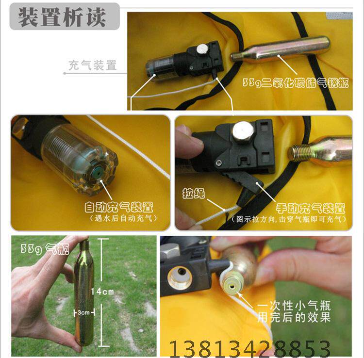 Manual red life jacket Automatic red life jacket Cylinder (life jacket 33g) Cylinder (Life buoy 24g)