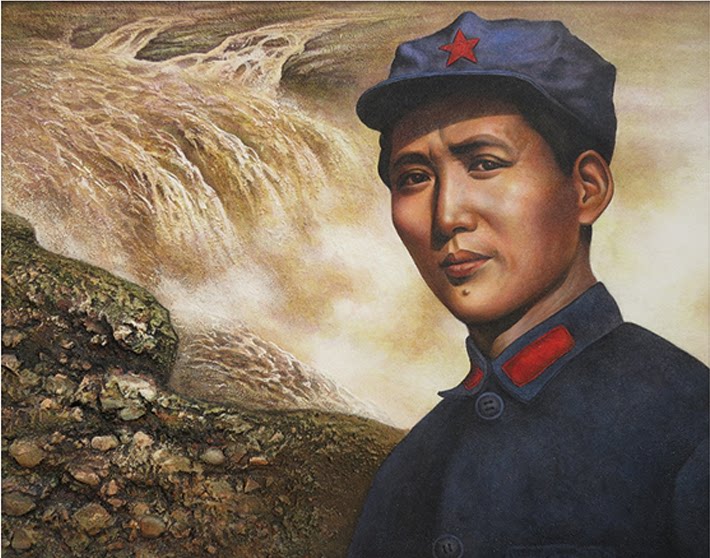 Mao Chairman's Poetic Oil Canvas Painted core Mao Zedong portrait high-definition thickening steps up the unframed horizontal version of the great man Wind Fan