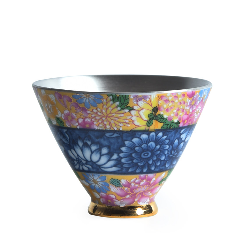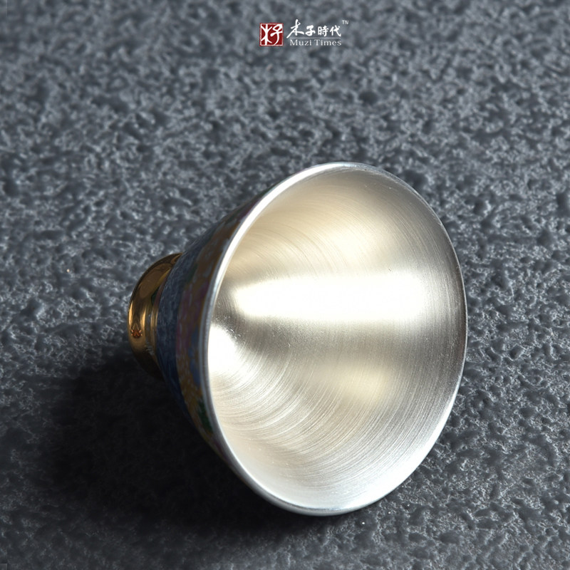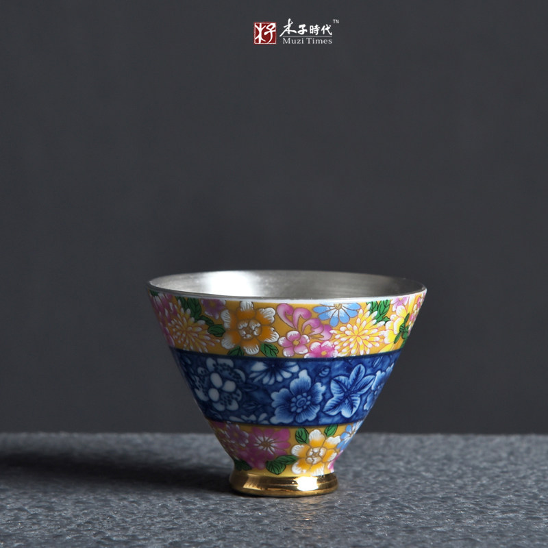 Pure silver Jingdezhen Qinghua porcelain inlaid silver ceramic tea cup Gongfu tea with silver single cup of tea drinking cup Master's cup tea cup