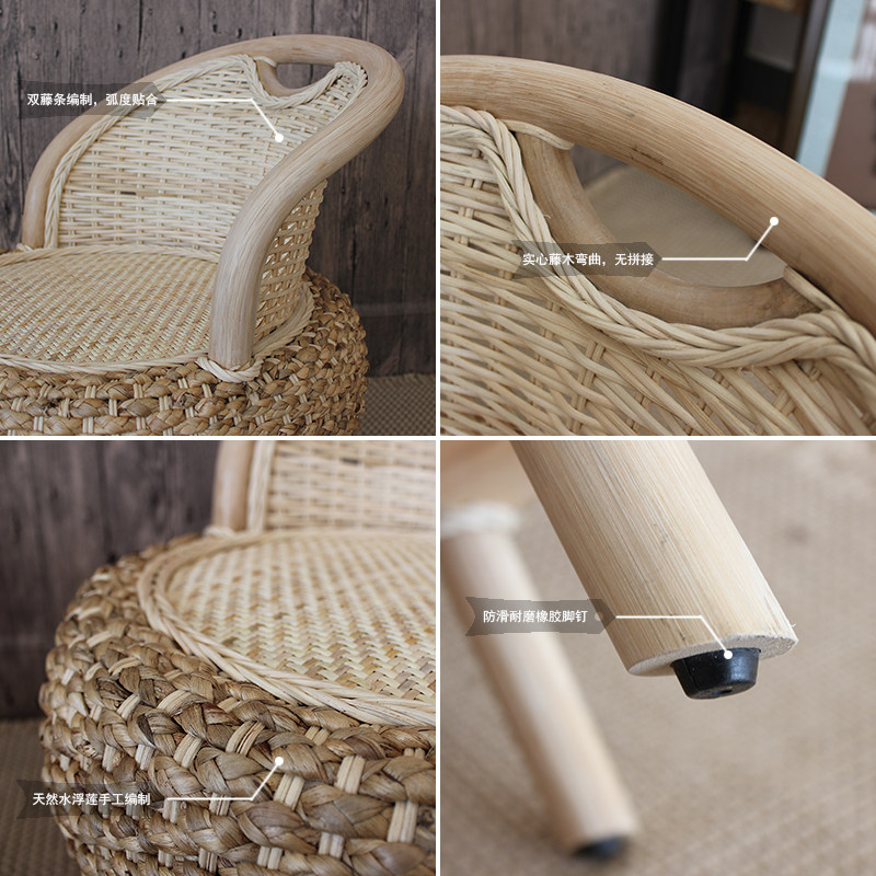 Handmade natural Indonesian rattan-knitted casual rattan chair balcony floating window chair straw chic tea art cafe seat