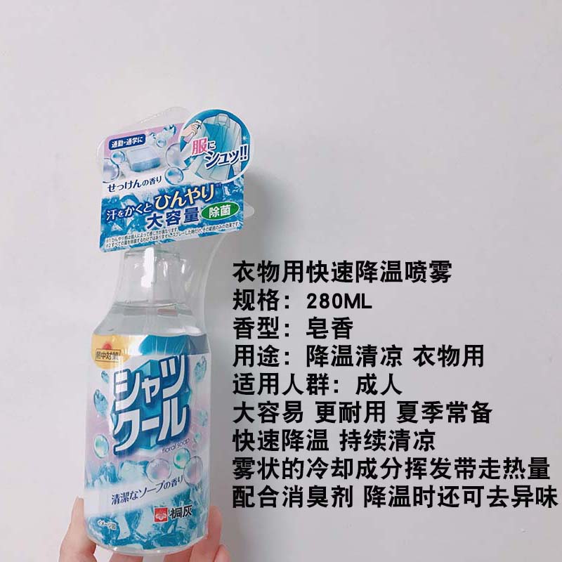 Japan Imports Tung Ash Chemical Clothes With Anti-Sweat Cooling Cold Sensation Mint Cool Spray Large Capacity 280ml