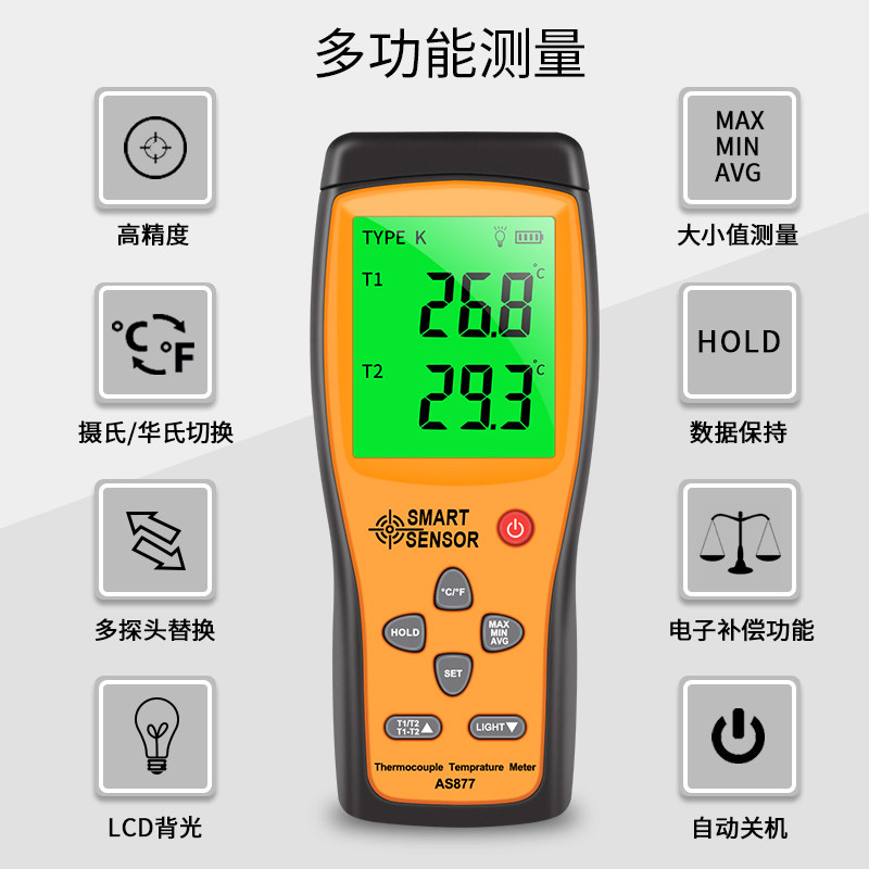 Hima AS877 Dual Channel Temperature Table K-type thermocouple thermometric meter AS887 Four-channel high-precision thermometer