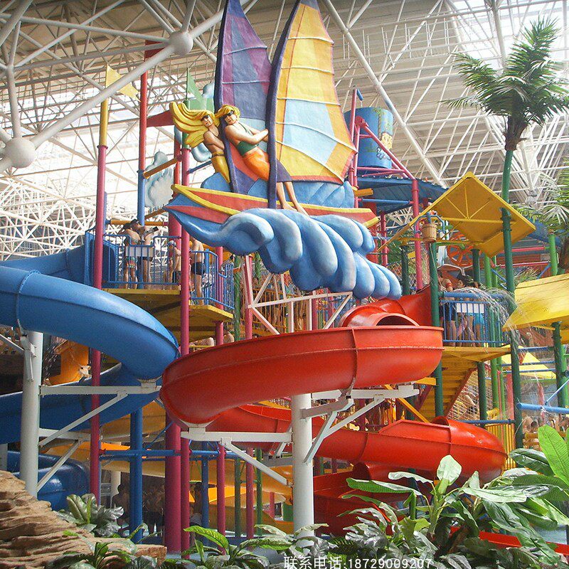 Water Park Equipment Space Basin Rainbow Slide Amusement Park Facilities Net Red Fiberglass Large Slide manufacturer
