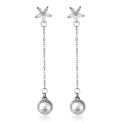 A zircon flower Pearl without ear hole A zircon flower pearl ear needle