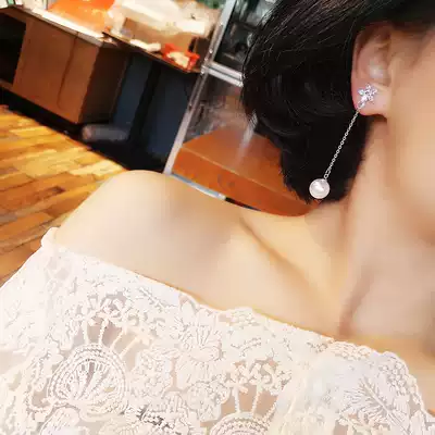 Korean flower snowflake zircon ear clip ear pin earring simple fashion versatile long version pearl earrings without ear hole female