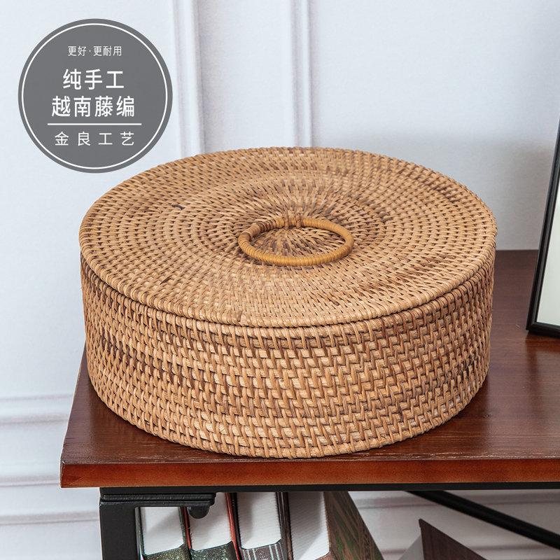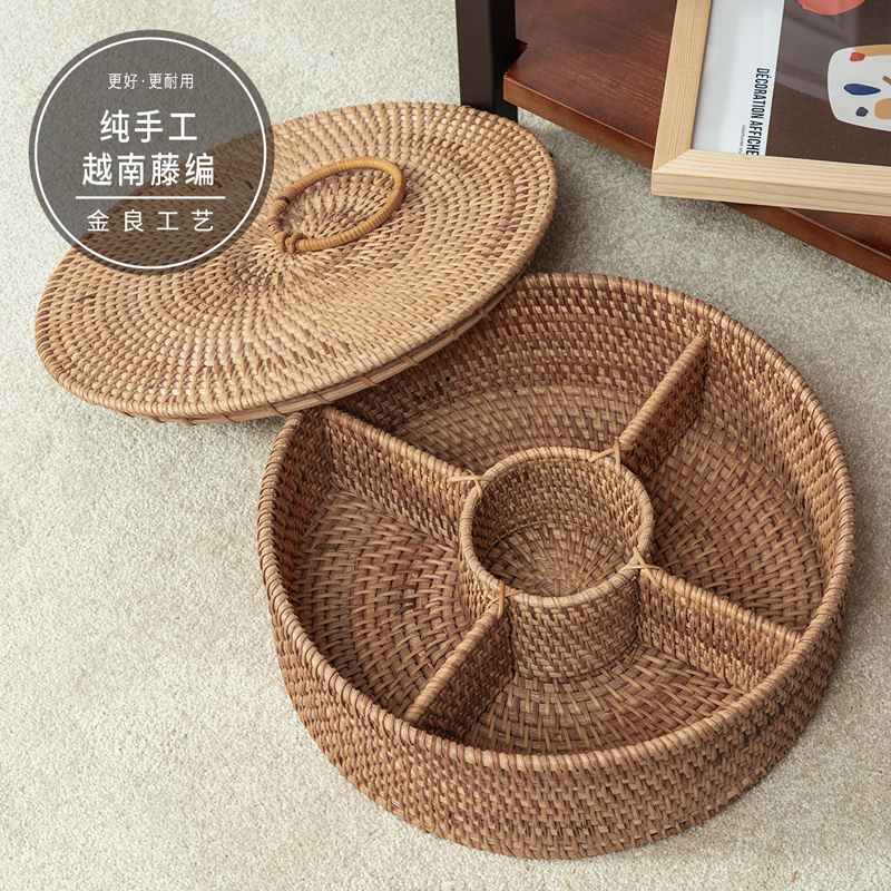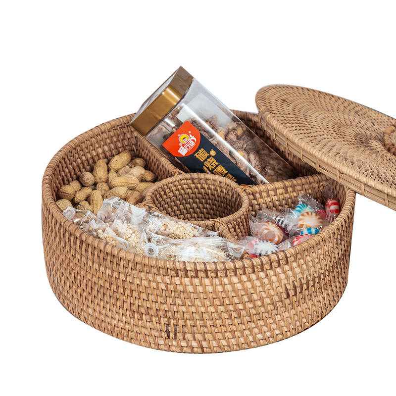 Rattan snack storage box with lid Hand woven rattan basket with interval Candy box American Dining Room decoration