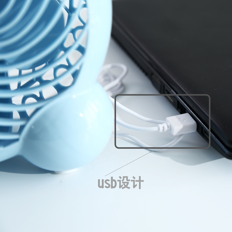 Cartoon Blue Mini Fan Usb Available Mobile Charging Student Office Dormitory Silent Electric Fan