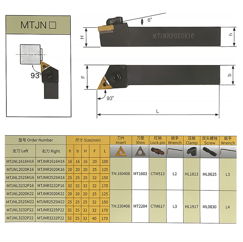 MTJNR1616H16 Positive Knife MTJNR2020K16 Positive Knife MTJNR2525M16 Positive Knife MTJNR3232P16 Positive Knife MTJNR4040R16 Positive Knife MTJNL1616H16 Reverse Knife MTJNL2020K16 Reverse Knife MTJNL2525M16 Back Knife MTJNL3232P16 Back Knife MTJNL4040R16 Back Knife MTJNR2525M16 Front Knife (Shock Resistant Knife Shaft)