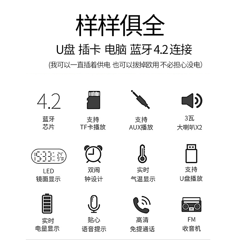 Radio senior portable mini semiconductor full band fm broadcast FM card rechargeable Bluetooth