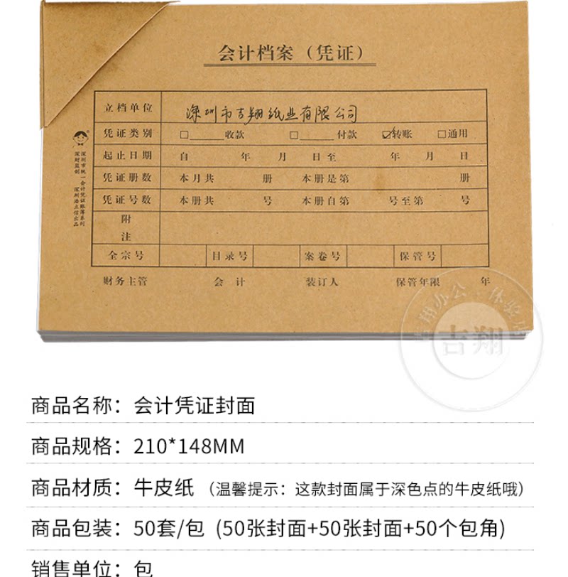 50 sets including corner A5 voucher cover paper A4 half 210*148mm financial accounting binding bookkeeping back cover paper