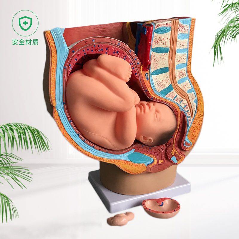 Sagittal anatomical model in women (4 parts) Fetal model of a nine-month pregnancy in the pelvic pelvis Intuitive delivery
