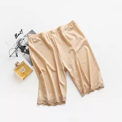 Safety inner pants women's anti-walking large size ice silk five-point pants high waist safety pants lace black fat mm200 kg